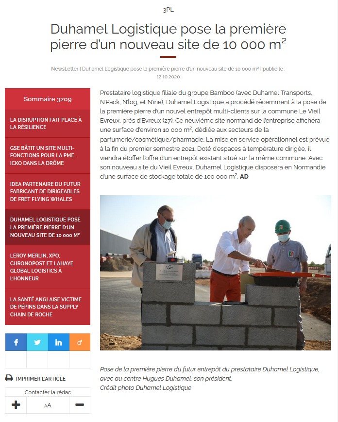 Duhamel a tout d’abord creusé son sillon dans la logistique industrielle avant de se tourner en 2006 vers la logistique de produit de Luxe. En 2009, l’entreprise prend le train de l’e-commerce.